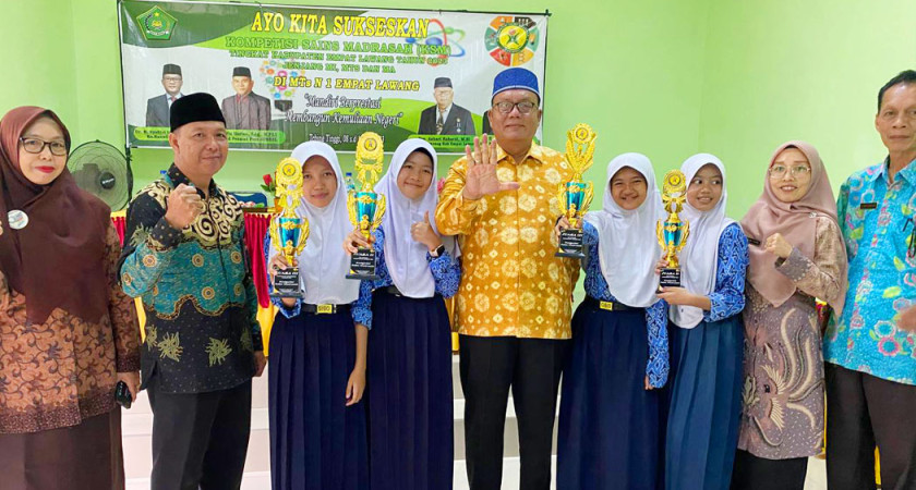 Muara Pinang, Humas – Usai bergelut sengit dalam ajang kompetisi Sains Madrasah (KSM) tahun 2023 tingkat Kabupaten Empat Lawang yang diselenggarakan pada 10 Juli yang lalu, akhirnya para juara KSM, hari ini Kamis (20/7) menerima piala dan piagam yang diserahkan langsung oleh Kakankemenag Kabupaten Empat Lawang.