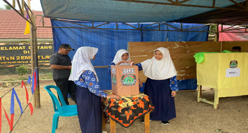 Muara Pinang, humas. Sebanyak 1068 siswa beserta 71 dewan guru dan staf MTsN 2 Empat Lawang menyuarakan aspirasinya dalam berdemokrasi memilih ketua OSIM masa bakti 2023-2024, Rabu (4/10)